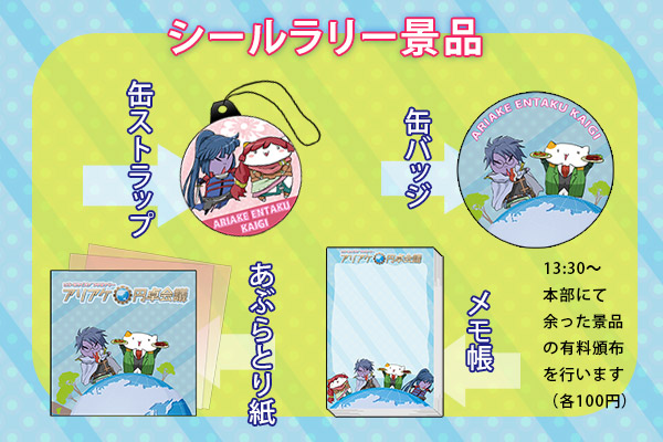 各サークル様で配布されるシールを集めてください。4枚ごとに1つ景品がもらえます。