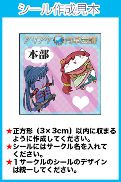サークル様にはシールを自作した上で、一般参加者の皆様に配布してください。