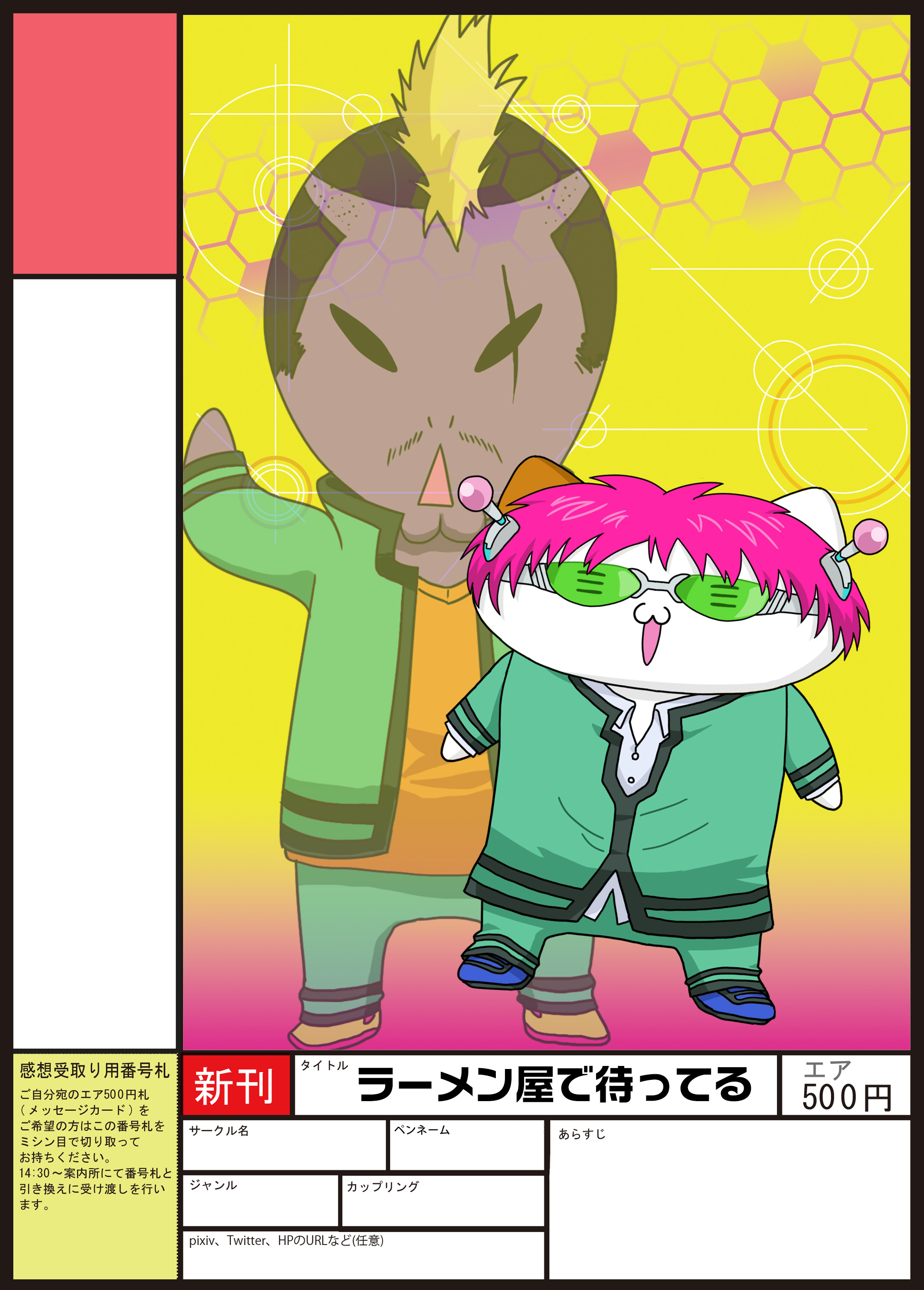 当日斉木楠雄のΨ難の同人誌、またはグッズが1種以上頒布できること。